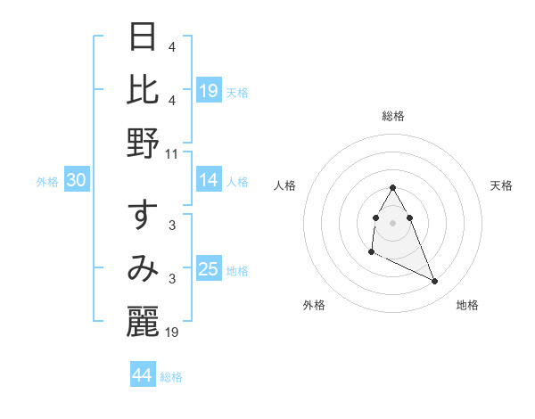 日比野 すみ麗さんを姓名の画数から五運を鑑定