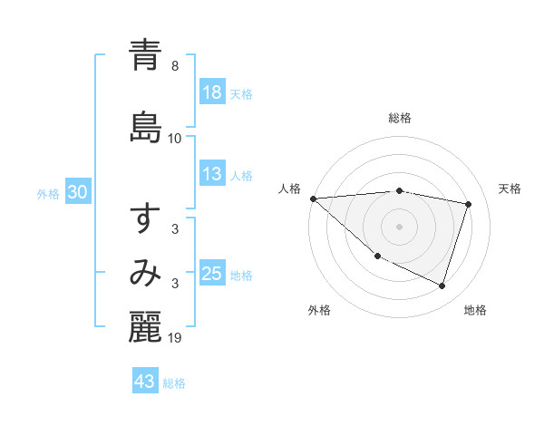 青島 すみ麗さんを姓名の画数から五運を鑑定