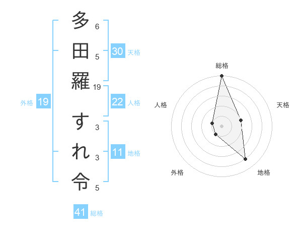 多田羅 すれ令さんを姓名の画数から五運を鑑定