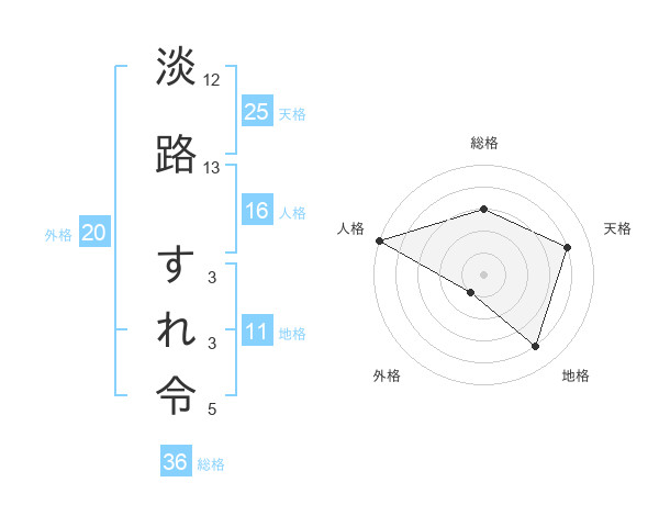 淡路 すれ令さんを姓名の画数から五運を鑑定