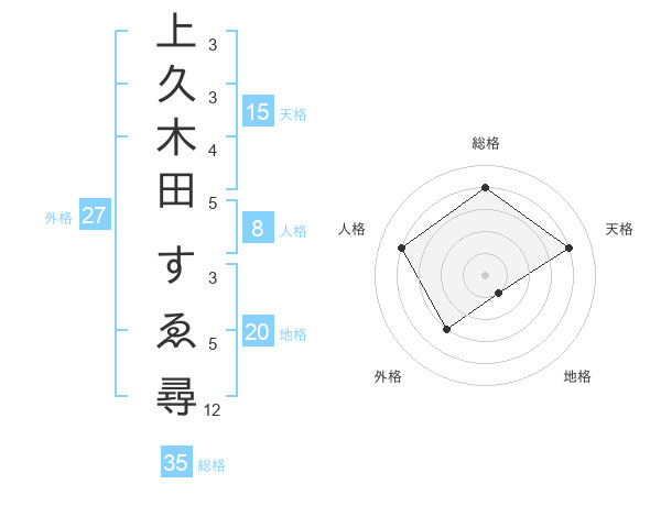 上久木田 すゑ尋さんの総格は35画の4点!