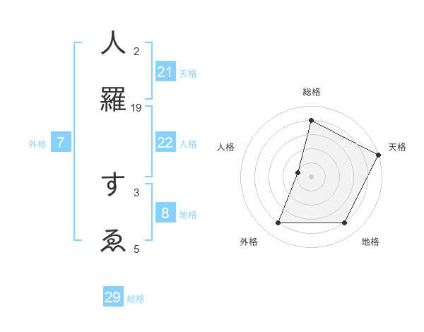 人羅 すゑさんを姓名の画数から五運を鑑定