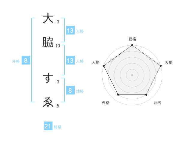 大脇 すゑさんを姓名の画数から五運を鑑定
