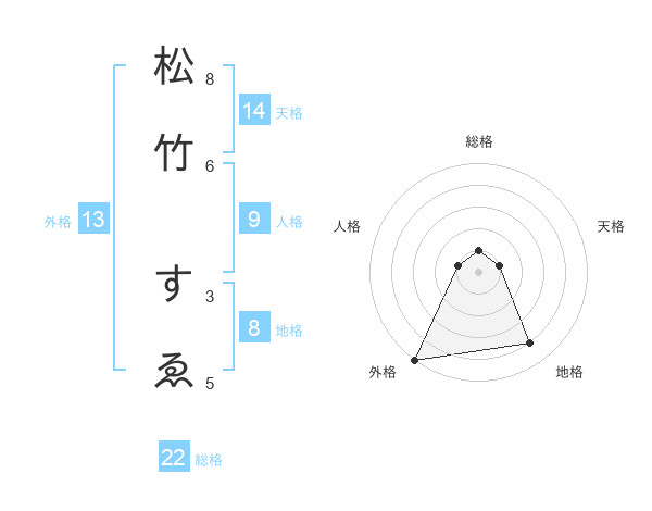 松竹 すゑさんの外格は13画の5点!