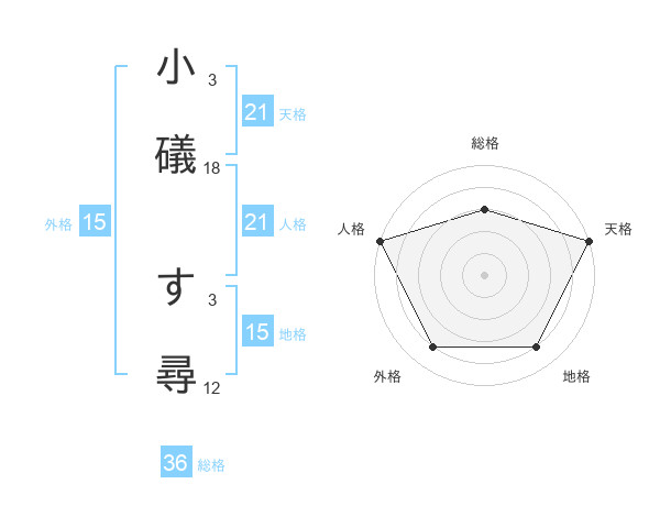 小礒 す尋さんの天格は21画の5点!