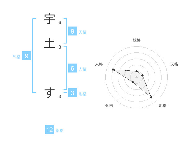 宇土 すさんの総格は12画の1点!