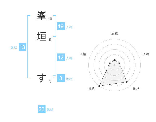 峯垣 すさんの外格は13画の5点!