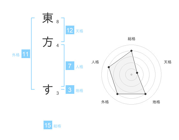 東方 すさんの総格は15画の4点!