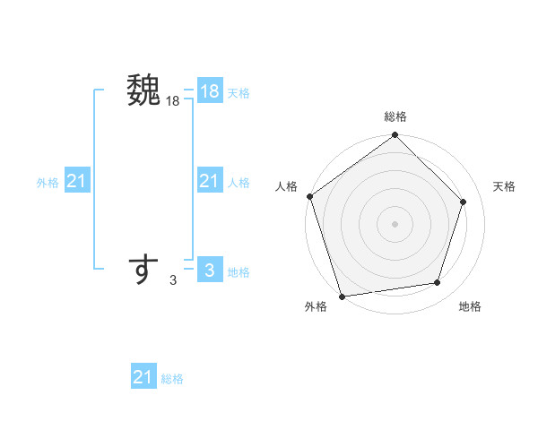 魏 すさんの総格は21画の5点!