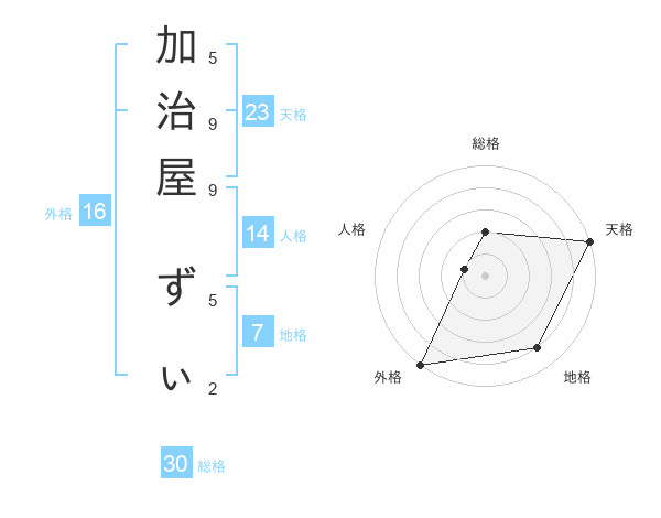 加治屋 ずぃさんの天格は23画の5点!