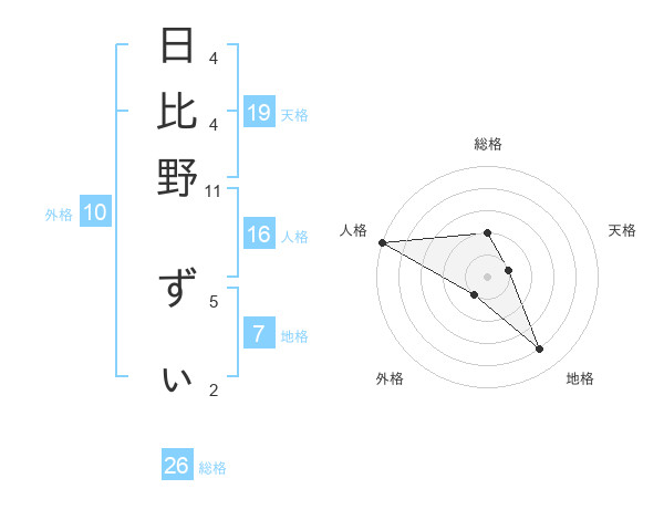 日比野 ずぃさんの総格は26画の2点!