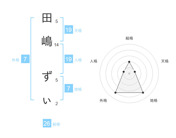 田嶋 ずぃさんの天格は19画の1点!