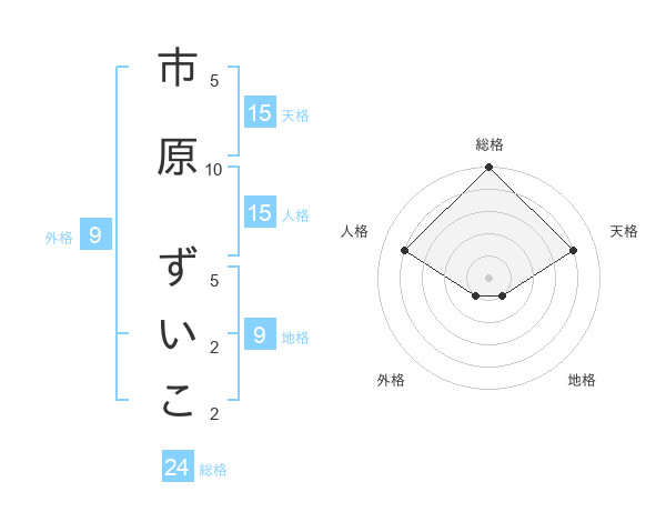 市原 ずいこさんを姓名の画数から五運を鑑定