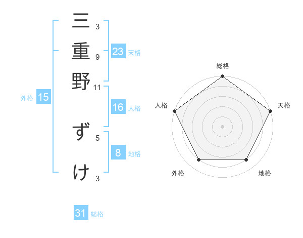 三重野 ずけさんを姓名の画数から五運を鑑定