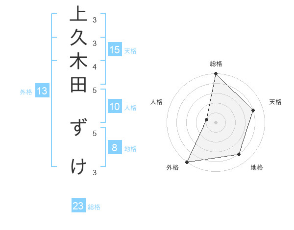 上久木田 ずけさんを姓名の画数から五運を鑑定