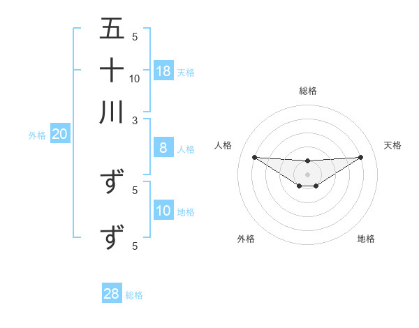 五十川 ずずさんの天格は18画の4点!