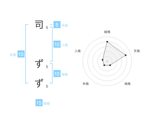 司 ずずさんの総格は15画の4点!