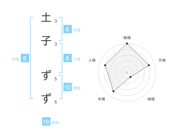 土子 ずずさんの外格は8画の4点!