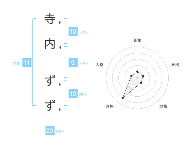 寺内 ずずさんの外格は11画の4点!