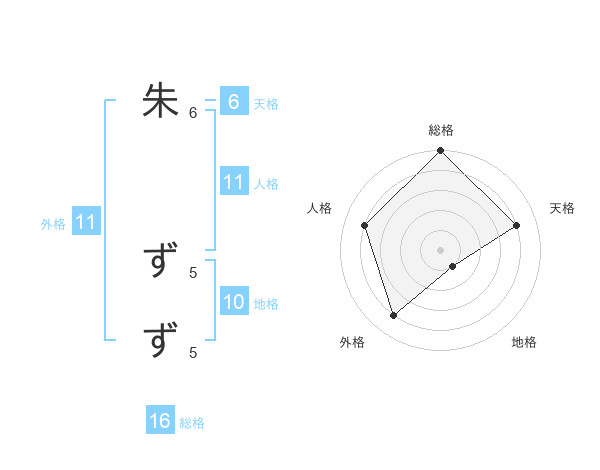 朱 ずずさんの総格は16画の5点!
