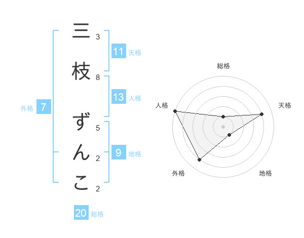 三枝 ずんこさんを姓名の画数から五運を鑑定
