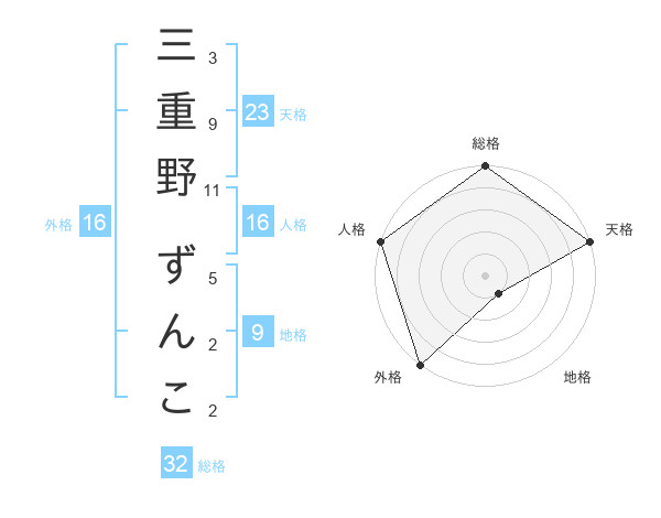 三重野 ずんこさんを姓名の画数から五運を鑑定