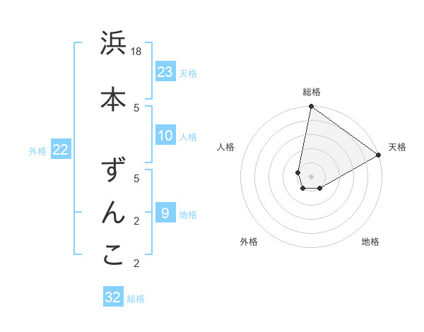 浜本 ずんこさんの外格は22画の1点!