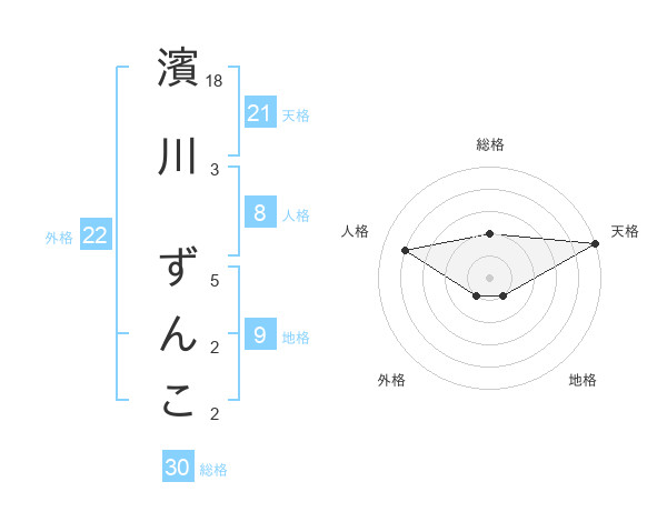 濱川 ずんこさんの天格は21画の5点!