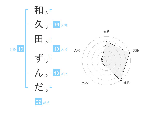 和久田 ずんださんを姓名の画数から五運を鑑定