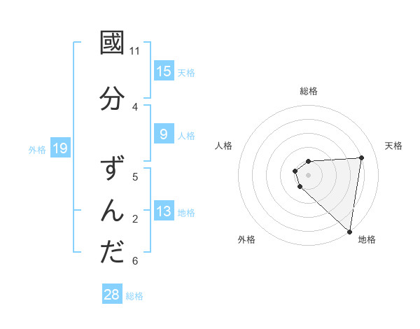 國分 ずんださんの天格は15画の4点!