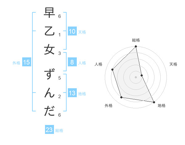 早乙女 ずんださんを姓名の画数から五運を鑑定