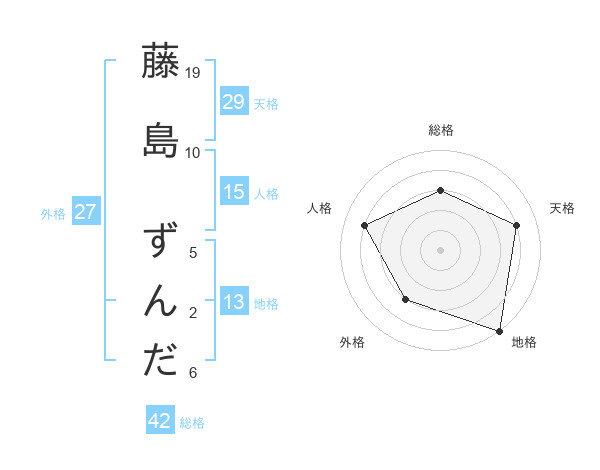 藤島 ずんださんを姓名の画数から五運を鑑定