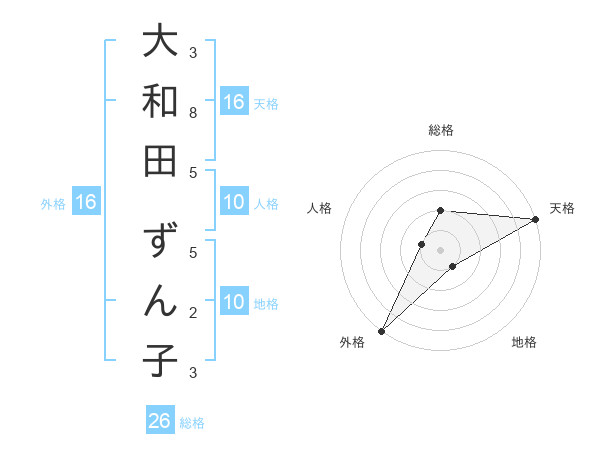 大和田 ずん子さんを姓名の画数から五運を鑑定