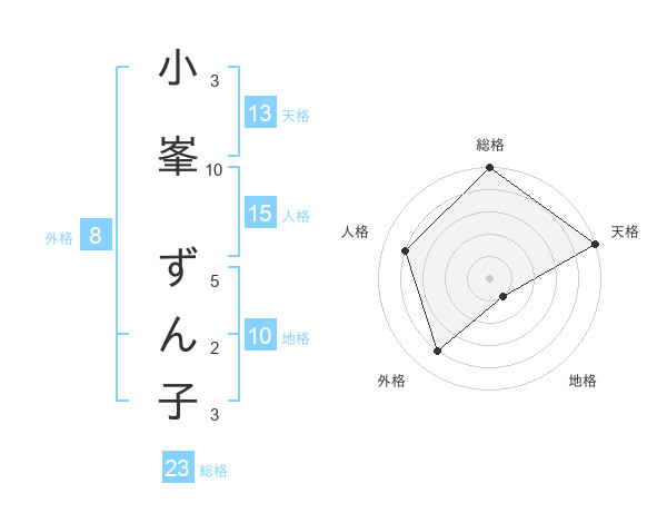 小峯 ずん子さんを姓名の画数から五運を鑑定