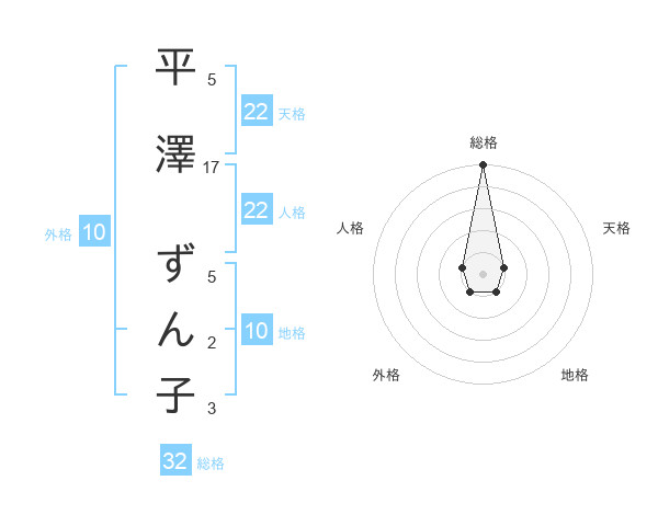 平澤 ずん子さんを姓名の画数から五運を鑑定
