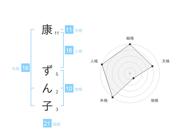 康 ずん子さんの総格は21画の5点!