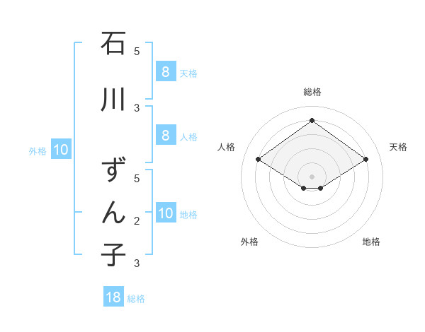 石川 ずん子さんの地格は10画の1点