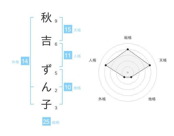 秋吉 ずん子さんの総格は25画の4点!