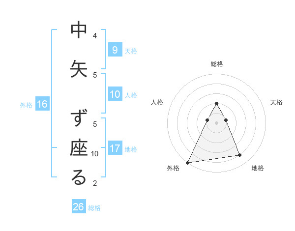 中矢 ず座るさんの総格は26画の2点!