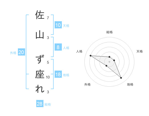 佐山 ず座れさんの総格は28画の1点!