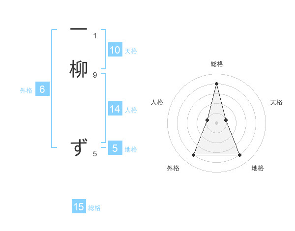 一柳 ずさんの総格は15画の4点!