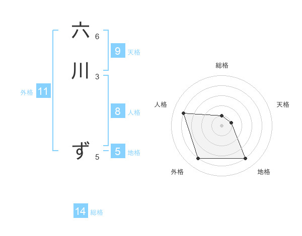 六川 ずさんの外格は11画の4点!