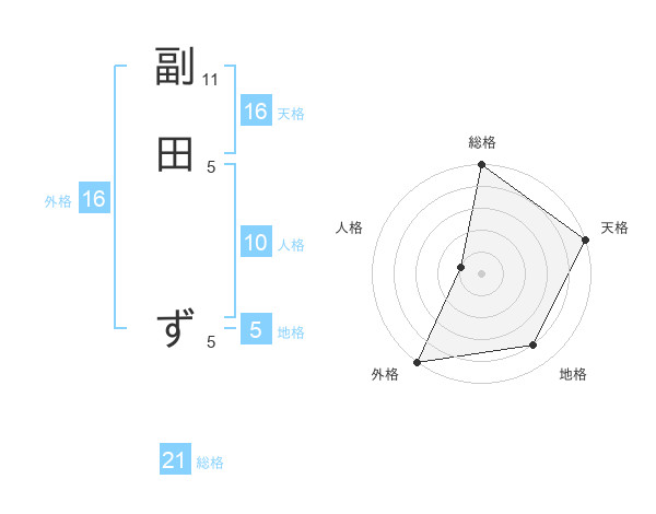 副田 ずさんの総格は21画の5点!
