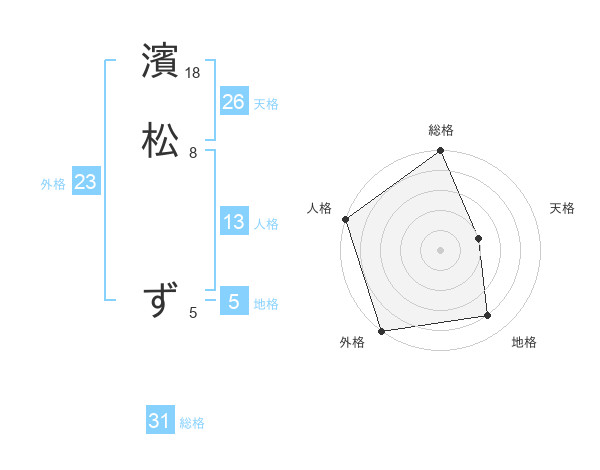濱松 ずさんの総格は31画の5点!