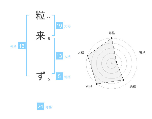 粒来 ずさんの地格は5画の4点!