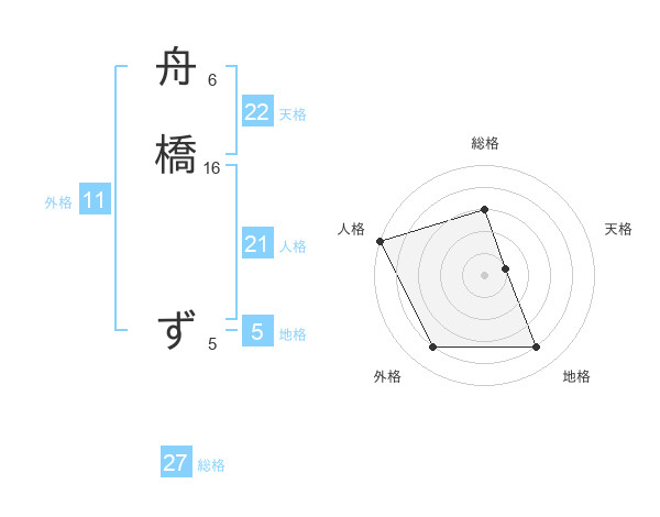 舟橋 ずさんの総格は27画の3点!