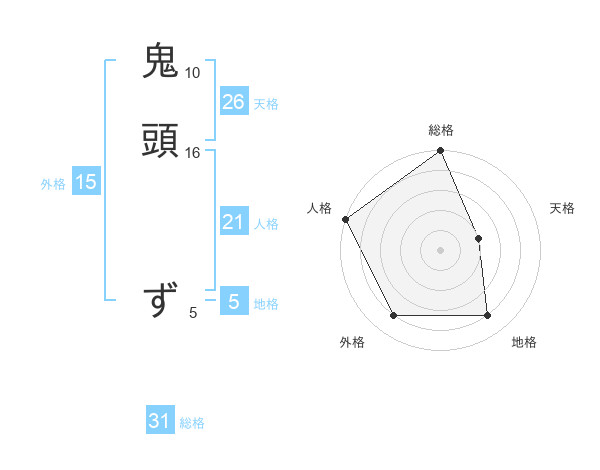 鬼頭 ずさんの総格は31画の5点!