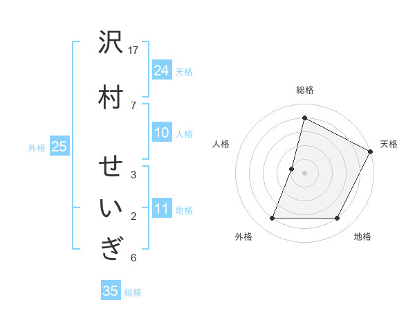 沢村 せいぎさんを姓名の画数から五運を鑑定