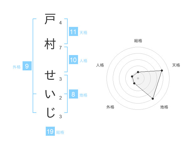 戸村 せいじさんの地格は8画の4点!
