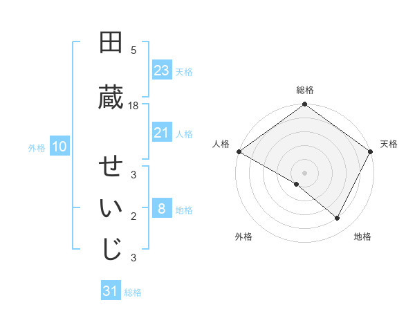 田蔵 せいじさんを姓名の画数から五運を鑑定